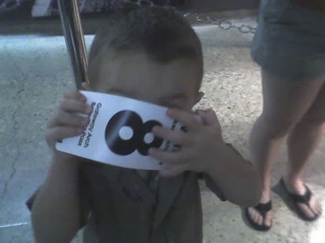 So when Amanda and Stacy visited, we didn't have enough time to go up into the Arch as I had to feed Luke some lunch. When he came this past weekend he really wanted to go to the Arch. As I was driving from his "county house" he saw the Arch and he said, "Hi Arch!" and "I go see Arch". He really wanted to go again, so on Saturday he and I went up together into the Arch. They have a small mock-up of the elevator that takes you up. I was worried he might be claustrophobic, so I had him get into it. He thought it was actually going to go up into it. Since it was only a 4 minute trip, I bought some tickets for us and after visiting the museum we took the tram up to the top. He pointed out his "city house" (with a little help) and he had a really great time. We took the tram up with 3 other people and he was laughing with them and of course flirting with the girls that were in there. My son is an incredible person as he is so very loving and caring about others. We had a professional picture taken that I'm putting in his scrapbook and as soon as I can get my scanner hooked back up, I'll post the picture of us together. The Arch is a great place to take kids and the National Park Service does a great job with kids, putting on puppet shows, and helping single dads get through security. Luke "thanked" the Park Ranger (with a little prompting) and I'm hoping to take him to additional parks soon. Today, we woke up and walked Daisy, and 2 blocks south, the City of St. Louis was having a "Fire Engine Parade". There must have been close to 40 fire trucks. The longer I live downtown, the happier I am as there is just SO MUCH TO DO within walking distance. Luke loves his "Starbucks" as on Saturday, we walked down to our Starbucks and he had a chocolate milk and iced lemon loaf. Luke thanked the baristas (specifically Mr. Mario) and we walked on down to the Arch. We had another awesome weekend. Sunday we woke up and he crawled into bed with me and we watched cartoons and then had some breakfast. We then walked Daisy, saw fire trucks, and then went swimming up on the roof of Luke's city house. Luke and I had a great time, and I can't wait to see him again!